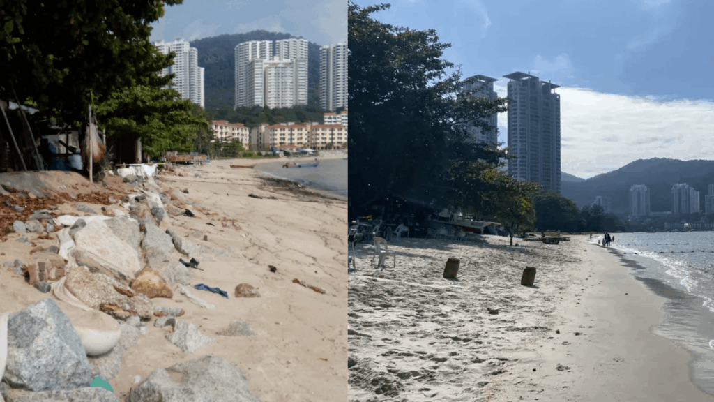 Easily accessible by car or local bus routes linking George Town and Batu Ferringhi, the beach attracts both residents and casual tourists. It is favored for morning walks, photography, and family gatherings. Visitors often stop to explore the nearby Straits Quay Marina and promenade. The area also hosts casual seaside cafés and food stalls offering local dishes like nasi briyani and cendol affogato.