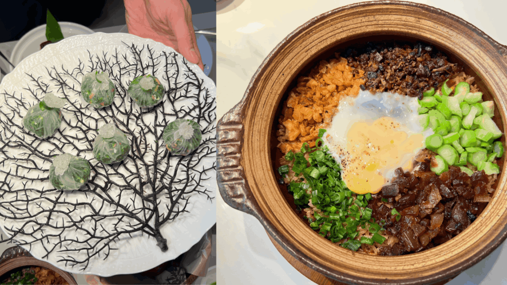 The wild greens and dried tofu crystal dumplings offered a refreshing contrast to the richer dishes on the table. Delicately wrapped in translucent skins, each dumpling revealed a fragrant filling of earthy wild greens and silky dried tofu. Light yet flavourful, the dish felt clean and comforting, with a gentle umami that highlighted the natural ingredients without overpowering them.